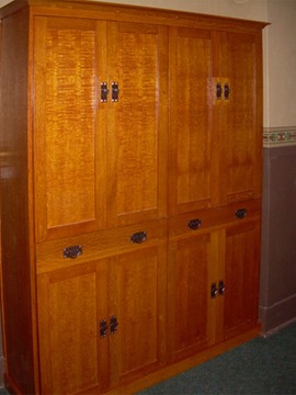 Craftsman style, in quarter-sawn white oak. Five step dye and stain finish.